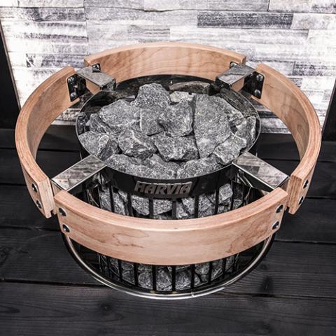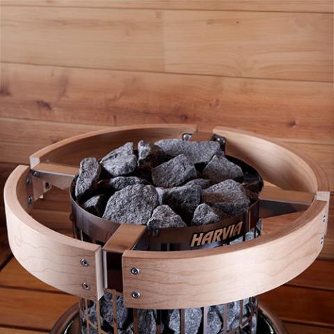 The Harvia HPC3 safety railing is a good way to increase bathing safety around the Harvia Cilindro 6 or 8kW heater. The safety railings consist of four wooden arches attached to each other and the sauna heater with stainless steel mounts. Made of heat-treated birch, the railings add a stylish and pleasant touch to the decoration scheme of the sauna.