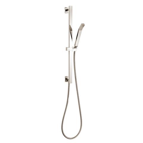 The ThermaSol Hand Shower Kit features a contemporary square design with an adjustable shower rail, ergonomic hose and hand shower wand to blend seamlessly with spa-inspired spaces.