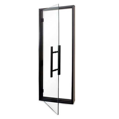 This handcrafted sauna door from PROSAUNAS is an affordable addition to your home or commercial sauna. Each door is pre-hung for ease of installation, featuring elegant clear frameless 8mm tempered glass and premium-quality black coated alder wood jambs, header, and threshold.