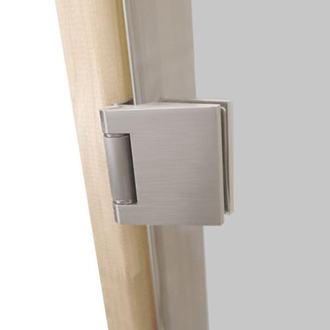 Stylish vertical door-pulls match your choice of wood feature Stainless Steel outer handles, while the inner handle is crafted of wood to ensure that it remains comfortable to the touch in a hot sauna. All doors include robust Aluminum hinges that compliment the color of the wood frame.