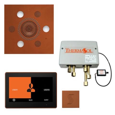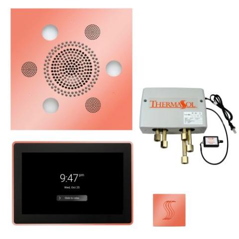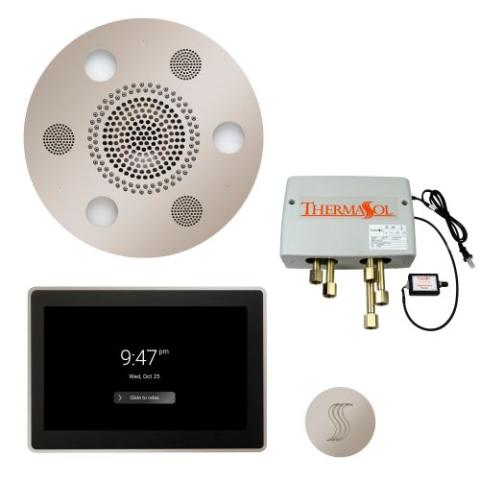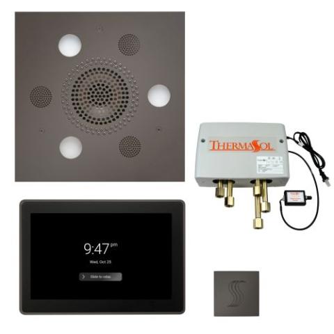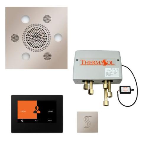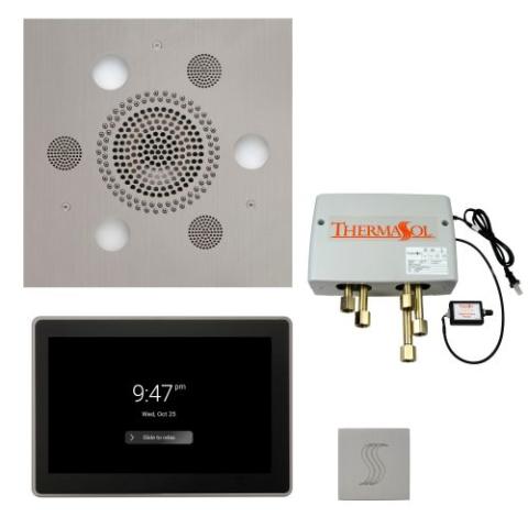 Transform your shower space into a therepeutic at-home spa with the ThermaSol Total Wellness Package, complete with the ThermaTouch2 touchscreen control, Serenity Advanced multi-sensory rainhead, SteamVection steamhead, and Digital Shower Valve.