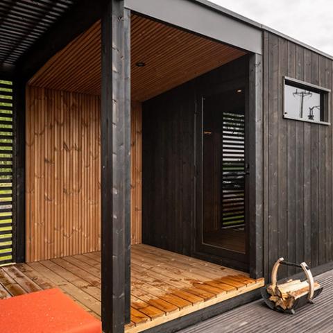 - Nordic dark thermo-spruce exterior for a rich, refined texture and durable weather resistance.