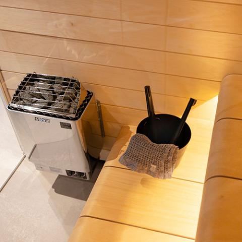 The Harvia Click is a lightweight sauna bucket and ladle set sporting a sleek, minimalist design for ergonomic comfort and functionality.