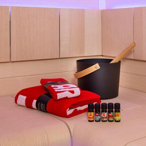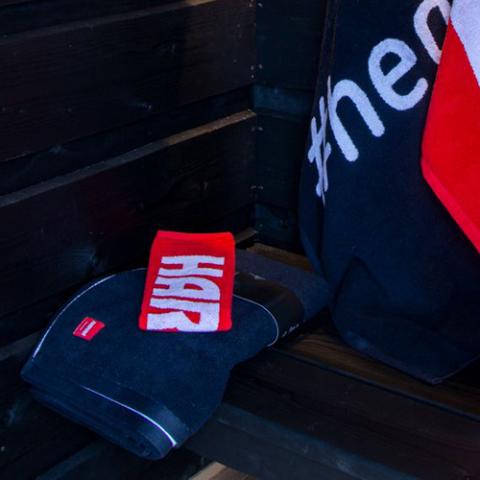 Featuring a minimalist red design boasting a white Harvia logo, the high-quality hand towel seamlessly integrates into your routine to elevate your sauna experience.