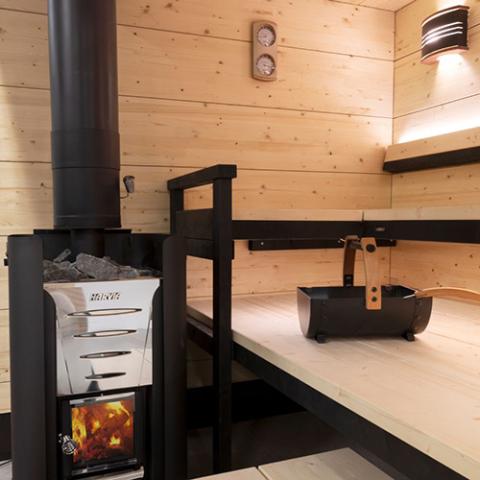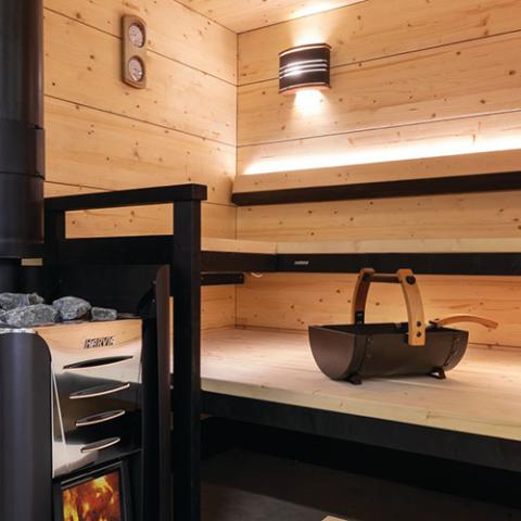 • Robust premium black steel construction with long-lasting use in fluctuating sauna temperatures.