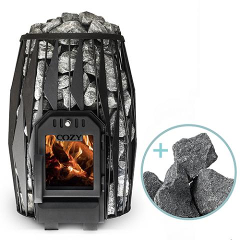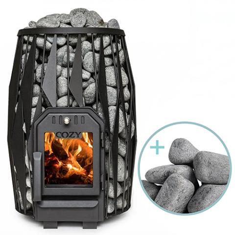 The Cozy Heat OG Sauna Stove Package comes complete with the Cozy OG Sauna Stove and Sauna Stones. The Cozy OG is an authentic wood-burning sauna stove hand-made in Estonia, where sauna is a national tradition. Wood-fired sauna stoves create a mild and long-lasting heat. Designed for a satisfying experience in sauna rooms up to 635 cubic feet (CF).