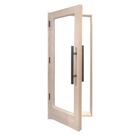 The PROSAUNAS self-closing Solid Wood Sauna Door is pre-hung for precision installation and features solid wood construction and a dual pane tempered clear glass window for excellent insulation properties. Hand Crafted in the U.S.A.