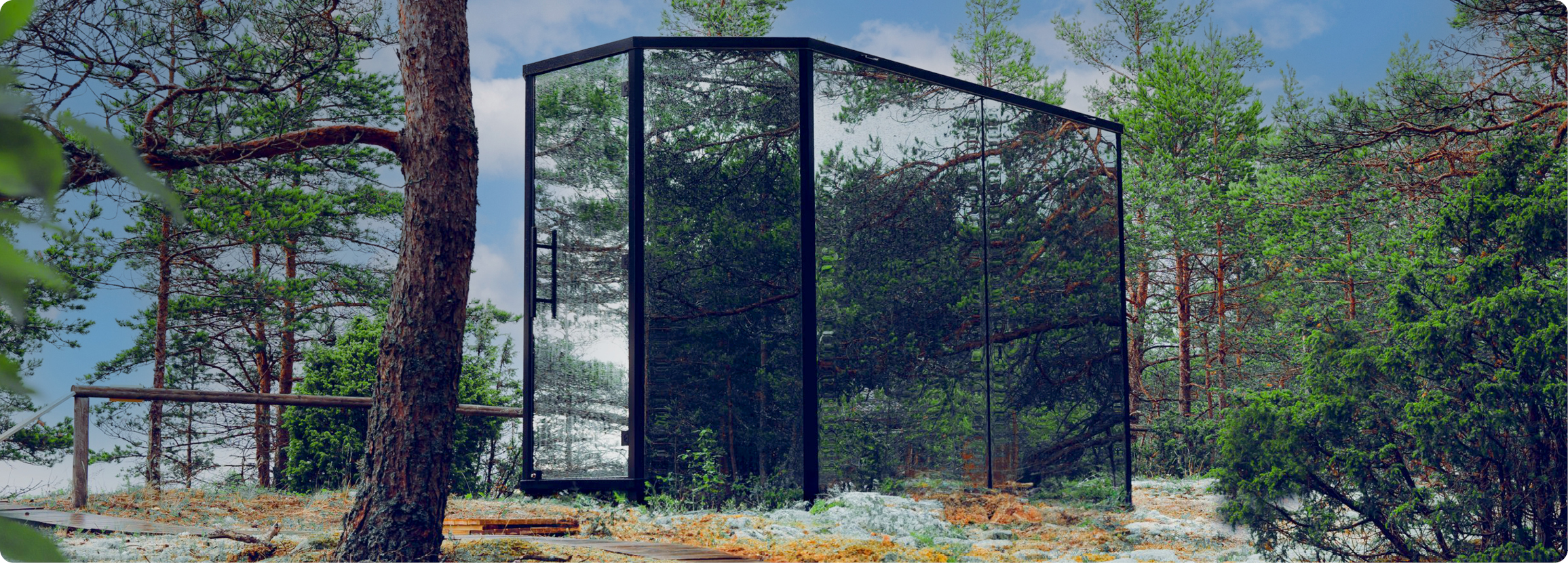 Winner of the prestigious European Red Dot Product Design Award, Haljas has gained international recognition for their exceptional craftsmanship and product innovation. Their mirror glass façade complements and enriches any outdoor surroundings. Transparent from the inside and completely reflective on the outside, each sauna unit let bathers enjoy beautiful panoramic views in complete privacy.