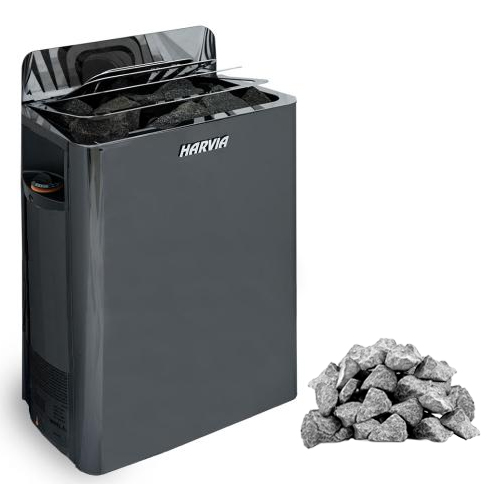 The Harvia Spirit 6kW Sauna Heater Package comes complete with the Spirit SP60E Sauna Heater, Xenio Wi-Fi Control, and Sauna Stones. This premium-quality heater package has an elegantly curved shape, allowing it to heat quickly to your desired temperature in sauna rooms from 177 to 294 cubic feet (CF).